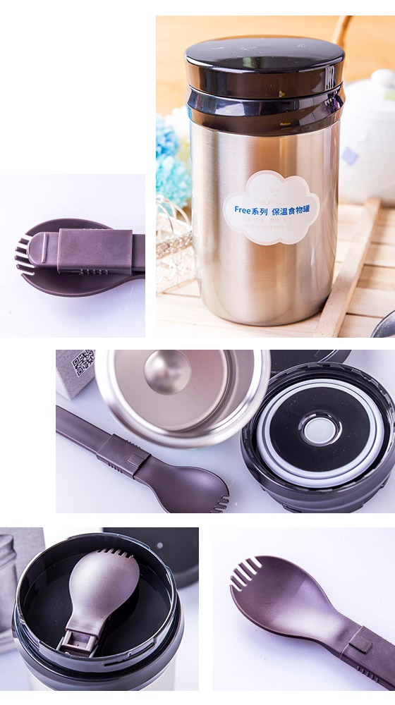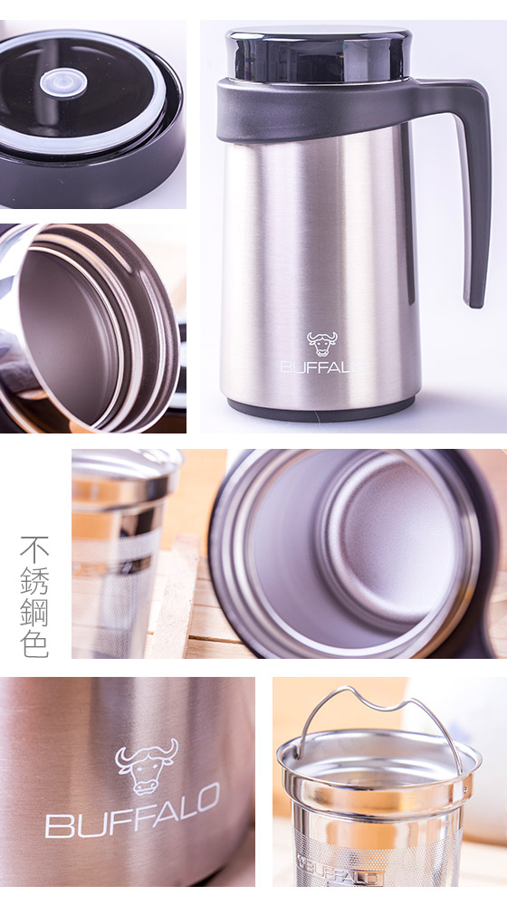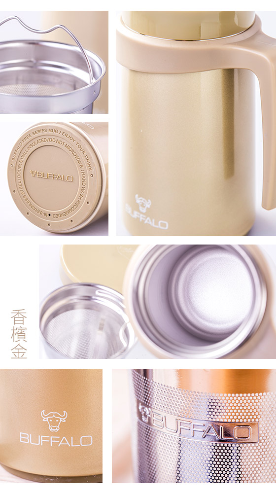 | 提供舒適合宜的溫度 讓在外的你,也能品嚐到溫暖美食與冰涼冷飲 304不鏽鋼二代辦公杯│不銹鋼色/香檳金☈保熱、保冷效果兼具 ☈採用食品級樹脂,衛生又安全 ☈內膽一體成型,二層不銹鋼真空、保溫效果佳 ☈底部加墊設計,防滑、抗磨損 ☈內附不銹鋼濾網,方便泡茶使用 ☈通過SGS檢驗,品質有保證     真空彈蓋保溫瓶│橘色/藍色/綠色☈杯蓋可上鎖,防止誤觸灑出 ☈一鍵按壓彈跳,方便單手飲用 ☈可拆卸式內蓋,好清洗又衛生 ☈底部防滑防刮處理,經久耐用 ☈內蓋防燙,防溢口設計 ☈通過SGS檢驗,品質有保證   保溫食物罐│藍色/不銹鋼色☈廣口設計,好裝食物、好清洗 ☈瓶蓋防滑設計,開啟與拴緊都方便 ☈上蓋矽膠墊,完整防漏、不易灑出 ☈專用摺疊式湯匙,收納於罐中,方便取出使用 ☈通過SGS檢驗,品質有保證     商品說明【牛頭牌BUFFALO】304不鏽鋼二代辦公杯 顏色:不銹鋼色、香檳金 外觀:長11.7x寬11.7x高16.3公分 口徑:直徑約6.8公分,底部直徑8.7公分 材質:SUS304不鏽鋼 【牛頭牌BUFFALO】真空彈蓋保溫瓶 顏色:橘色、綠色、藍色 材質:本體/JIS SUS304不鏽鋼、塑料/聚丙烯PP、密封墊圈/矽膠Silicone 容量:450ml 尺寸:7x7x21.8cm 淨重:約260公克 產地:中國 【牛頭牌BUFFALO】保溫食物罐 顏色:藍色、不銹鋼色 材質:本體/JIS SUS304不鏽鋼、上蓋、中栓、湯匙/食品級塑料PP、密封墊圈/食品級矽膠、中環/塑料ABS 容量:500ml 尺寸:9.3x9.3x15cm 淨重:約290公克 產地:中國 ※商品圖檔顏色因電腦螢幕設定差異會略有不同,以實際商品顏色為準。 | 詳細商品說明 | ※其他推薦※